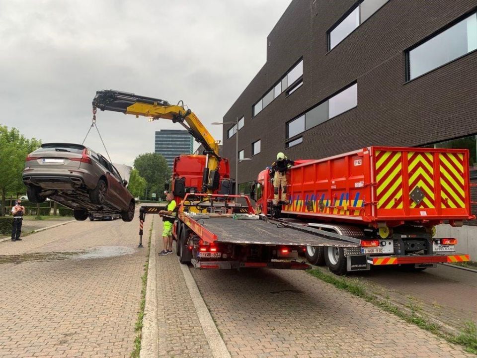 Some countries employ a technique where the ignited EV is picked up by a crane and dumped into large containers of water.