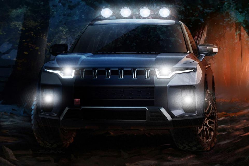 There are flared fenders, chunky styling, distinctively shaped lighting signatures, and a Jeep-like slotted grille.
