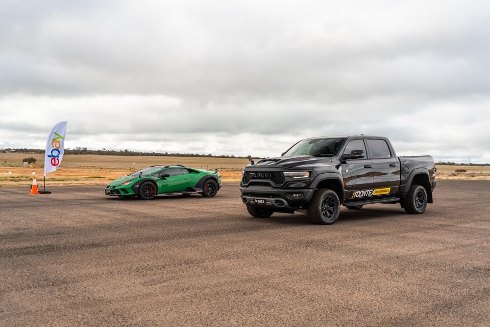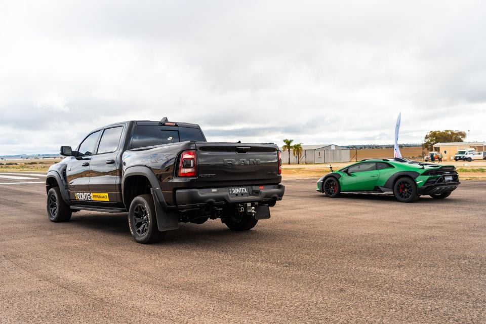 Two off-road performance cars are going drag racing! The off-road ready V10-powered Lamborghini Huracan Sterrato takes on the 1200hp twin-turbocharged and supercharged V8-powered RAM 1500 TRX from Dontex Performance to see which is fastest across the quarter-mile, both from a standing start and with a rolling start.