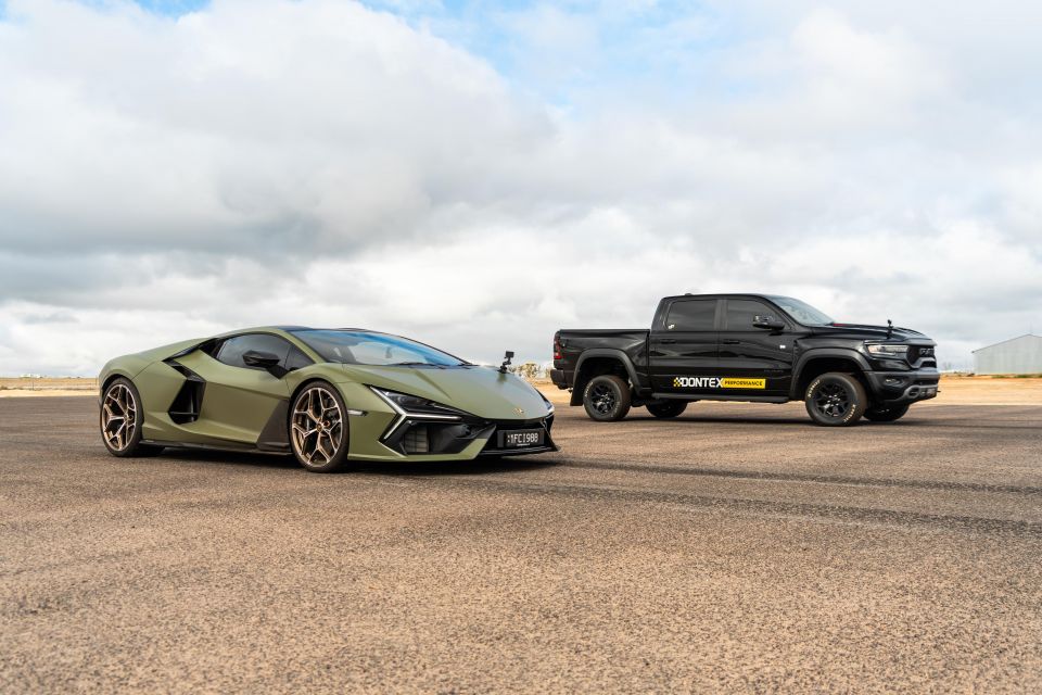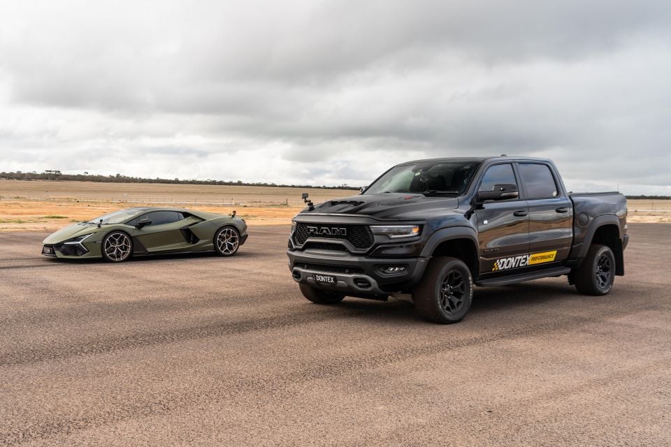 So, we lined up at the airport in Wyalkatchem to see whether the beastly Dontex Performance RAM TRX has the goods to take on the electrified V12 supercar from Lamborghini.