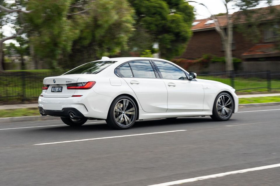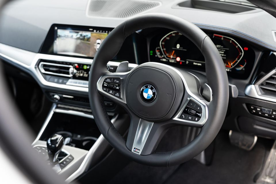 The 330i standard M suspension includes adjustable dampers that make the ride firmer or softer at the press of a button, and there are notable differences. It also comes with speed-sensitive Servotronic electric-motor-actuated steering, meaning it becomes more resistant at higher speeds and lighter in car parks.