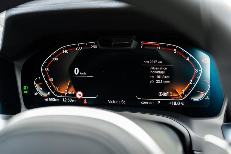 While there’s no standard head-up display, the large digital instrument cluster with changeable looks and the ability to integrate mapping is great. I again find BMW’s digital instruments lack the right sort of retro design clarity – a nod to analogue types like me.
