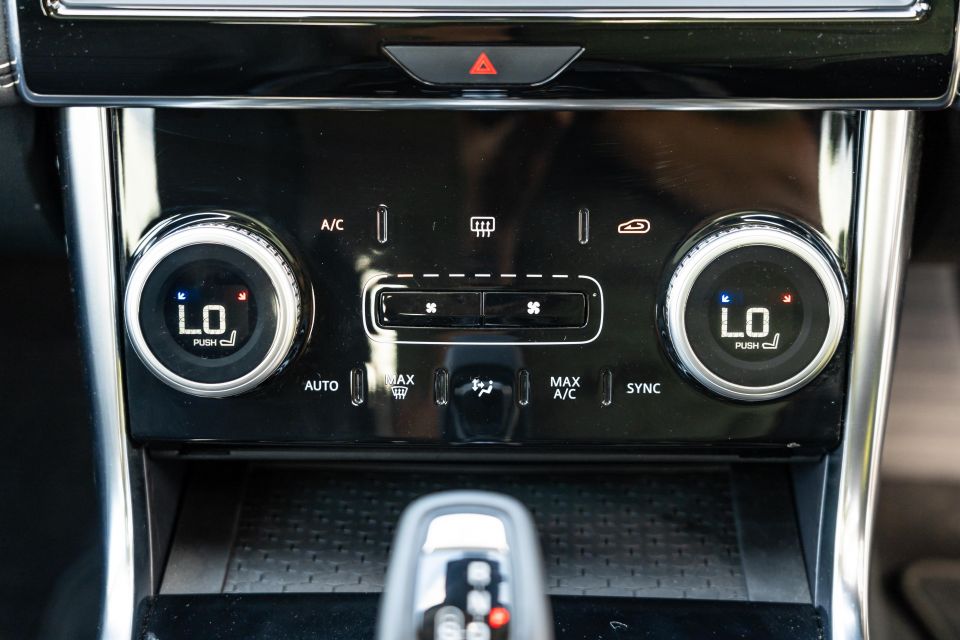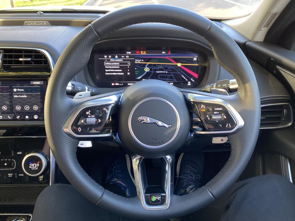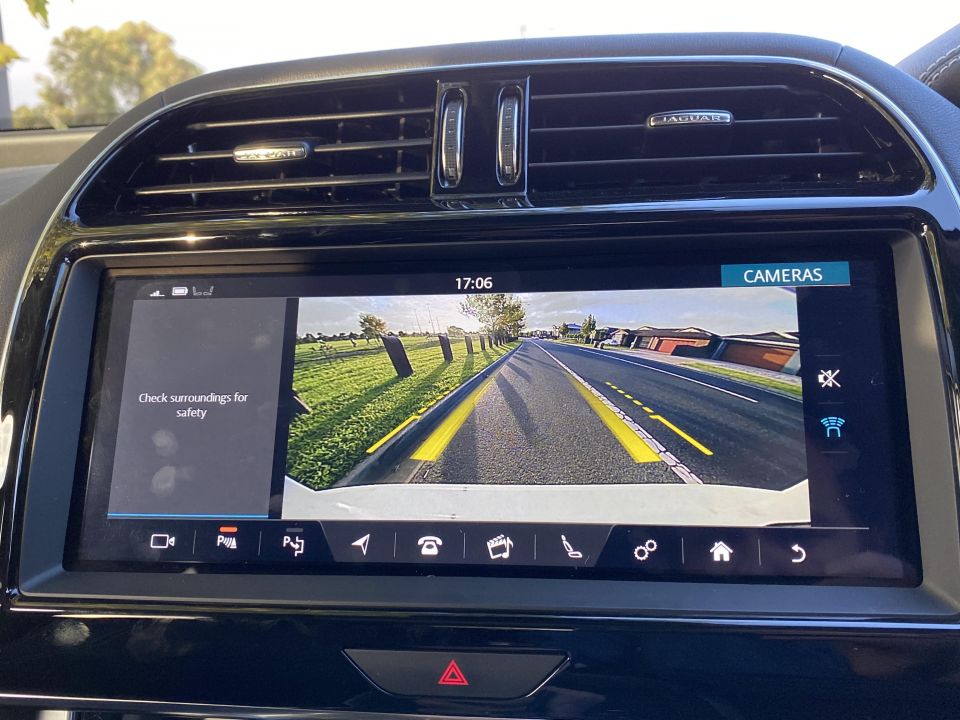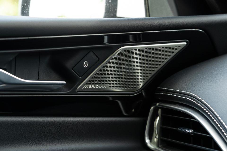 Beyond the optional HUD, wireless charger, and 360-degree camera mentioned already, other options fitted on our Jaguar included its sunroof ($1900), an uprated 380W Meridian sound system with 11 speakers ($1200), 19-inch black alloy wheels ($1300), 14-way heated front seats with driver-side memory presets ($1120), black exterior trim ($840), rear privacy glass ($650), and 40:20:40 black seats with a centre armrest ($460).
