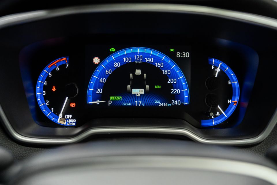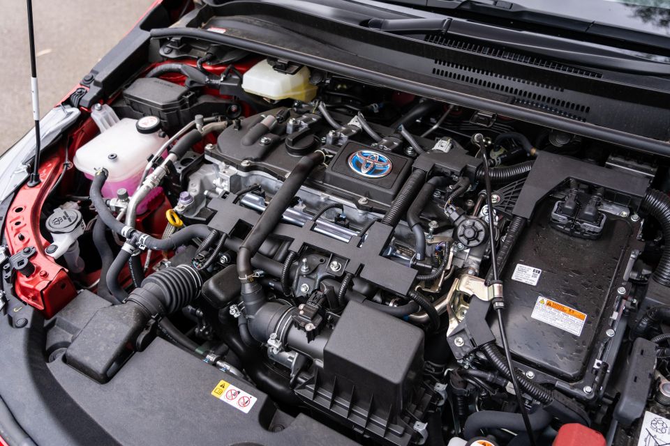 The Corolla ZR Hybrid has a 1.8-litre naturally aspirated petrol engine producing a rather weedy 72kW of power and 142Nm of torque. The combustion engine is supplemented by a 53kW and 163Nm electric motor, for a combined power output of 90kW.
