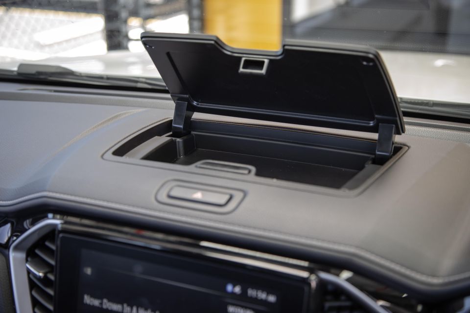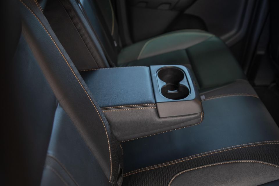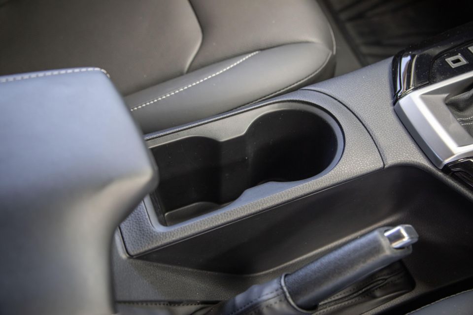 It fits a huge console bin, ample storage and, while lacking Isuzu’s pop-out cupholder trick has a spring-loaded design in the console that works well.