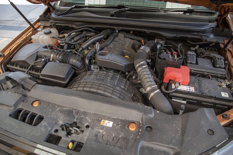 Similarly, the dominant 157kW at 3750rpm and 500Nm at 1750rpm from the Ranger’s 2.0-litre Bi-Turbo diesel could be perceived as being healthily efficient as a positive, or perhaps hard-worked in an opposite spin. It’s backed by a ten-speed auto.