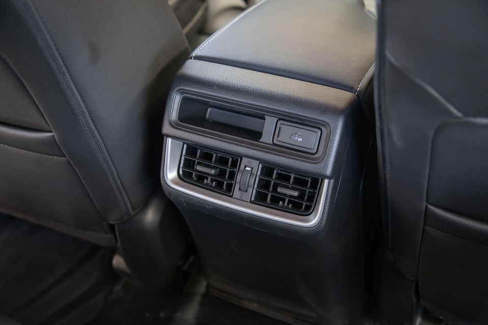 The Isuzu’s second row is quite impressive: the high-set seat bases offer kids excellent viewing inside and out, the seat profile has a relaxed back rake for adult comfort, and knee room is quite generous. Rear air vents and device power are catered for, there’s a handy grocery bag hook, and even a surround-sound ceiling-mounted speaker. There’s ‘storage’ under the seat, if that’s what you call a modest bit between the seat base and unlined steel floor plate.