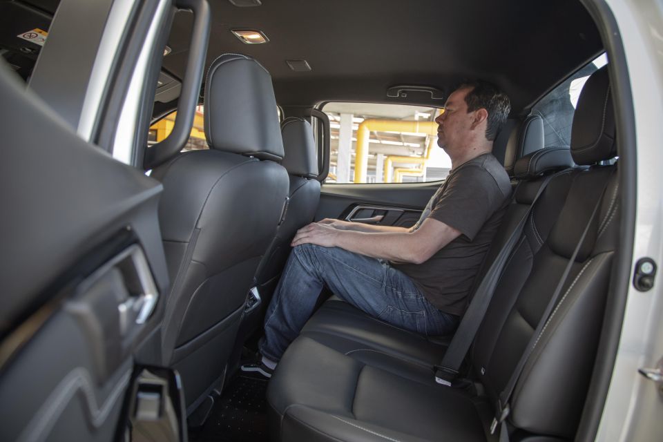 The one big surprise is that the Ranger’s second row feels more cramped than the D-Max’s. The rear seat shape isn’t quite as comfy, knee room is more constrictive, and there are no rear air vents as fitted to the Isuzu (though you do a get 230V three-pin outlet and a 12V).
