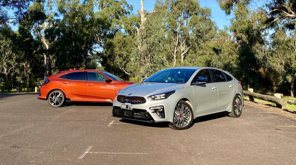 Neither of this pair are what you’d call proper hot hatches, but the Kia Cerato GT and Honda Civic RS offer more zip and more aggressive designs than your bog-standard small car.