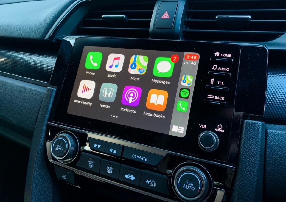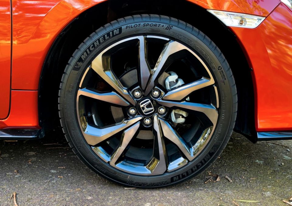 18-inch alloy wheels with a temporary space-saver spare, Michelin Pilot Sport 4 tyres (coincidence?), dusk-sensing LED headlights, leather-appointed seats with electric adjustment and heating for the driver, dual-zone climate control, Apple CarPlay and Android Auto, a proximity key, revering camera, and parking sensors at both ends.