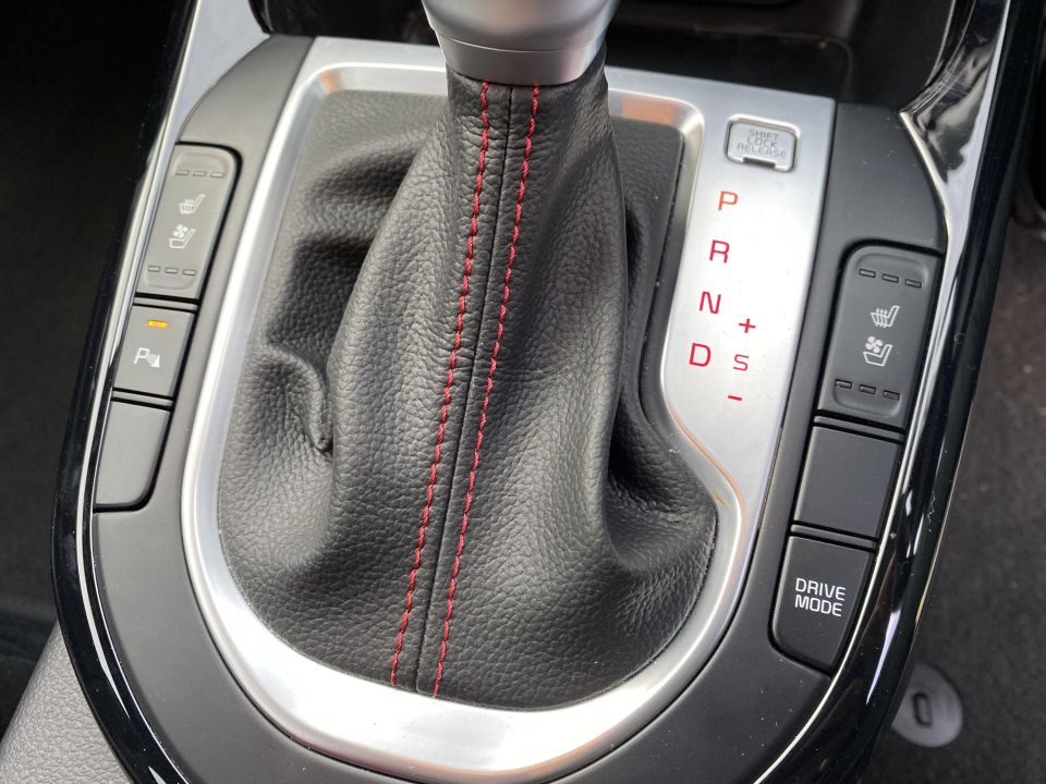 There’s definitely a colour theme in the Kia: black seats and surfaces, with red stitching everywhere, and a red lighting signature that certainly create an angry ambience at night.