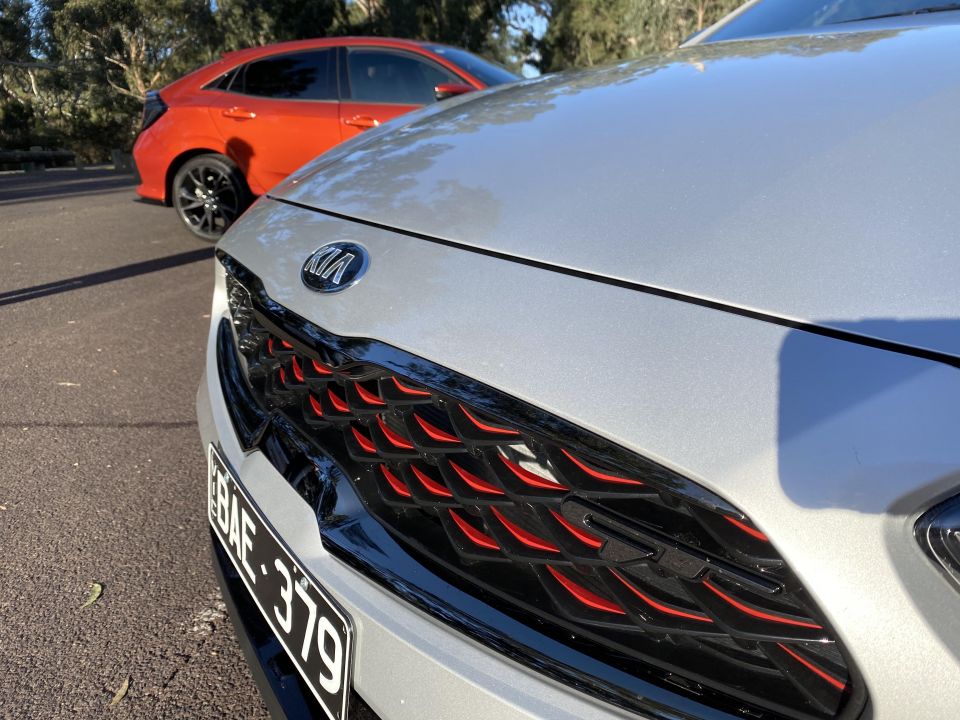 At the time time of writing, Kia had an offer on the Cerato GT of $34,490 drive-away, meaning it’s covering on-roads for you. The calculated drive-away price for the Honda Civic RS based on the company’s own site is $38,116 in Victoria.