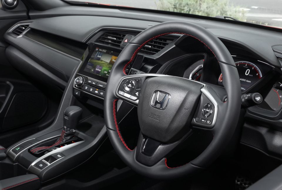 The driving position is excellent – low-slung with a raised transmission tunnel to the left of your leg, giving the Civic a coupe-like feel. Tacky buttons aside, the steering wheel is also lovely to hold and offers heaps of adjustment. The centrally-situated digital speedo/tacho screen is highly legible.