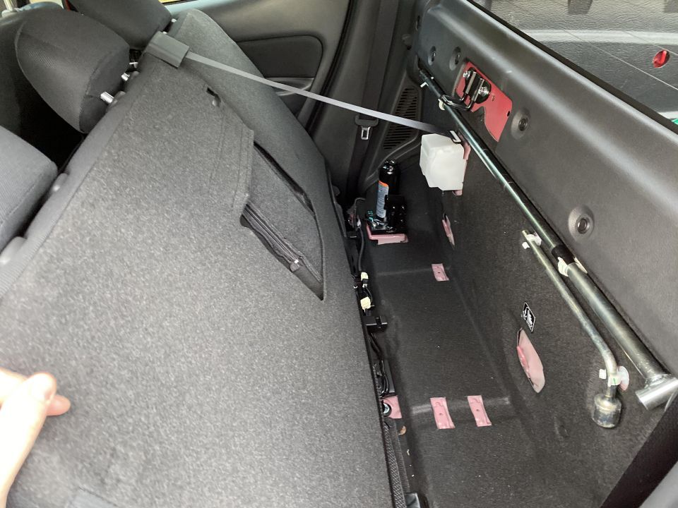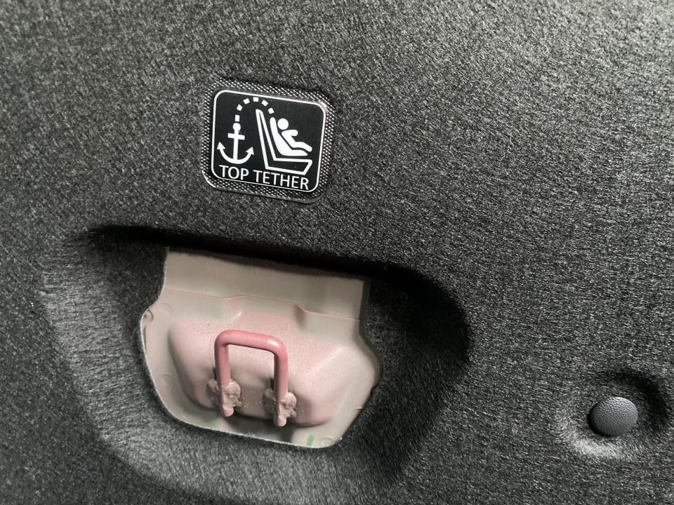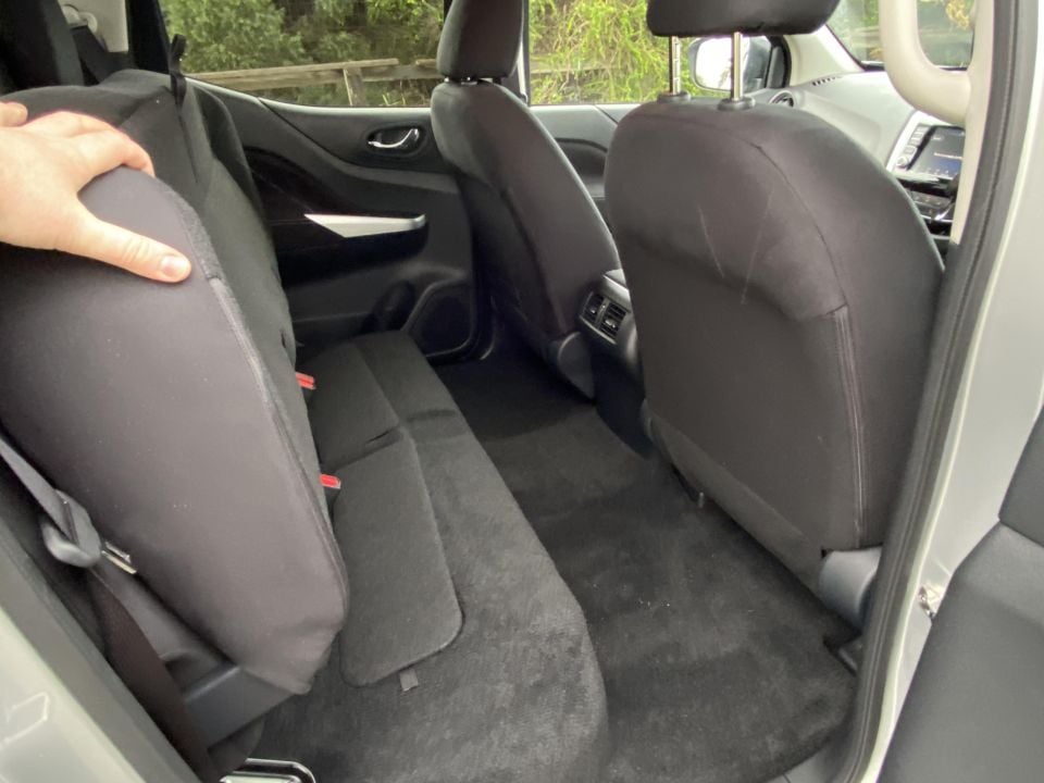 The Triton has metal top-tether points accessible behind the rear seat backrest, whereas the Navara sports a centre-mounted fabric loop for the top-tether point, which works in tandem with the metal poles in each outboard headrest.