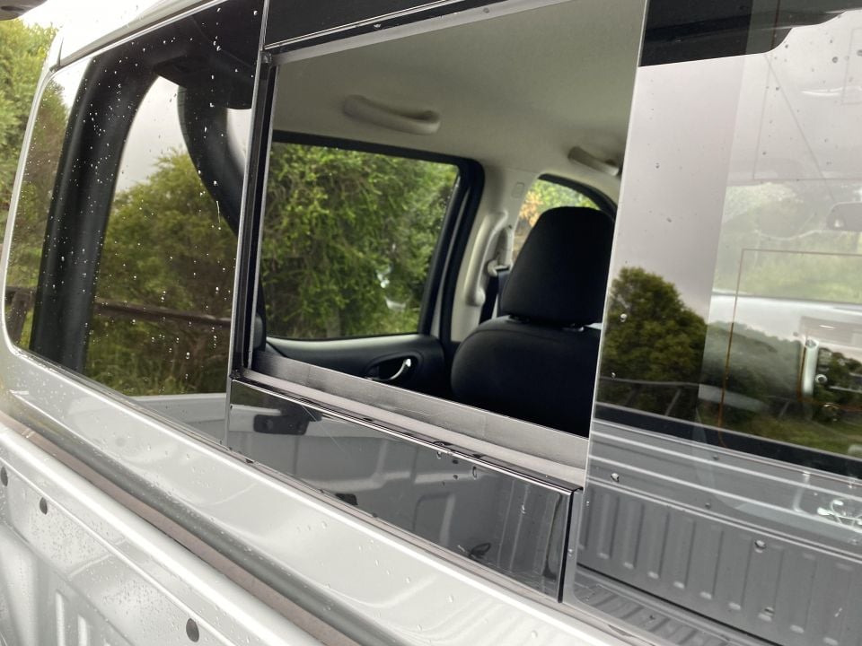On the other hand, features unique to the Nissan include a sports bar in the tub, a larger 8.0-inch touchscreen (7.0 inch in the Mitsubishi), factory satellite-navigation, and a power-opening (sliding) back window overlooking the tub.