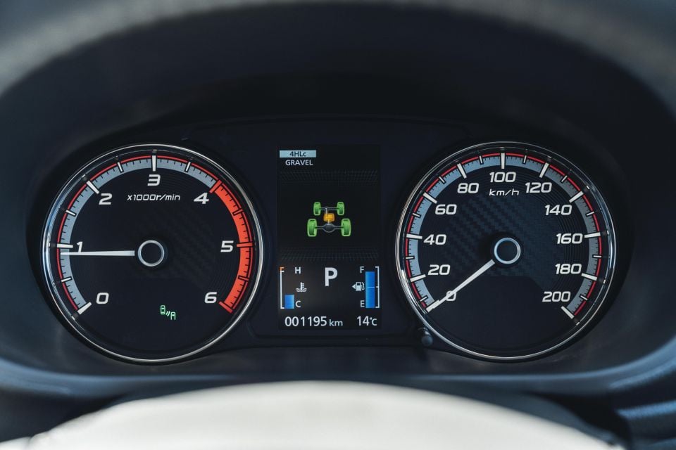 The analogue driver instruments are clear and the screen between them shows trip data and four-wheel drive system settings, but lacks a digital speedo. This feature should be mandated given police speed-limit tolerances.