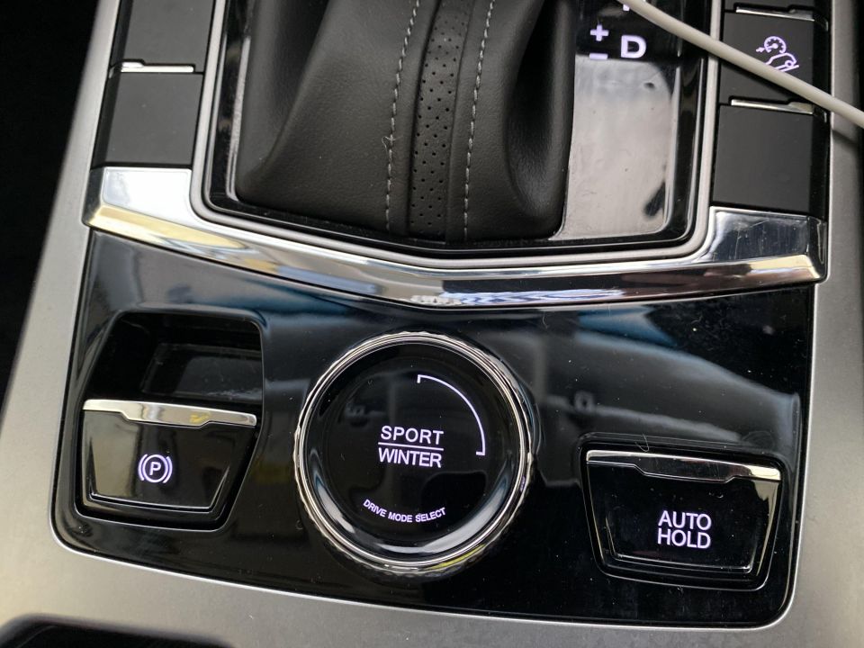 Below the centre screen is a dual-zone climate control system which you adjust with nicely damped buttons and knurled dials. This design carries over to the transmission tunnel, where you’ll find a dial to control the driving mode and buttons for the electric parking brake and the anti-creep auto hold function.