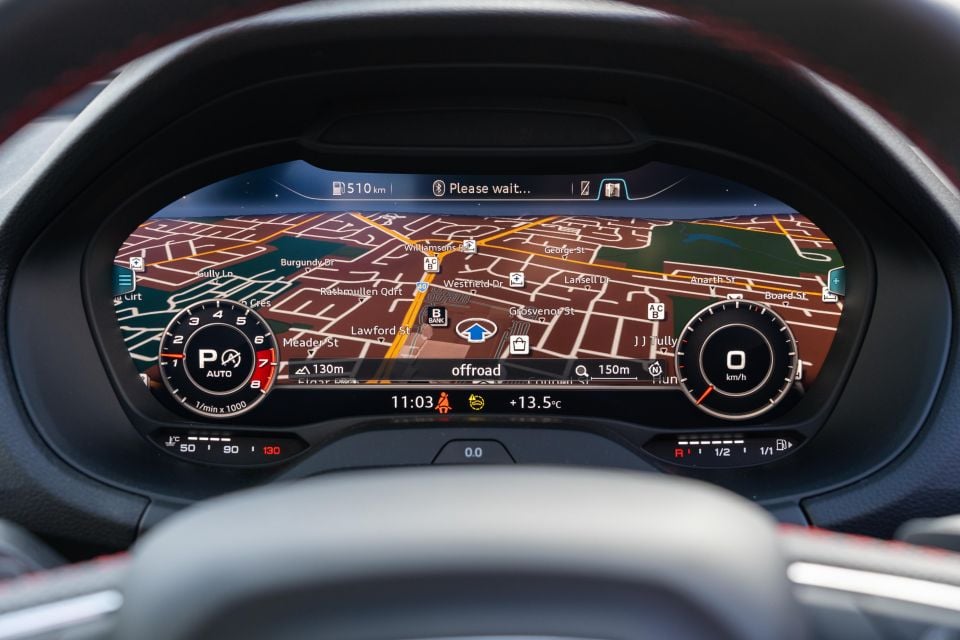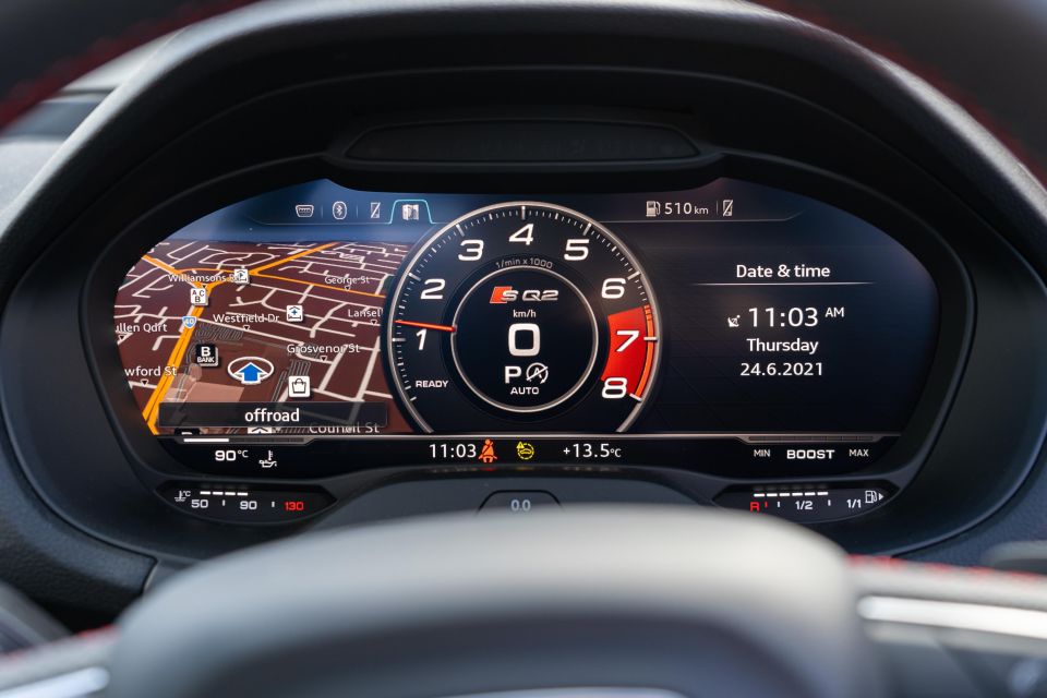 The driver display is prettier than the Audi Virtual Cockpit, and the performance gauges (boost, tyre pressure) are nice to have, but the screen isn’t necessarily any more useful to the driver.