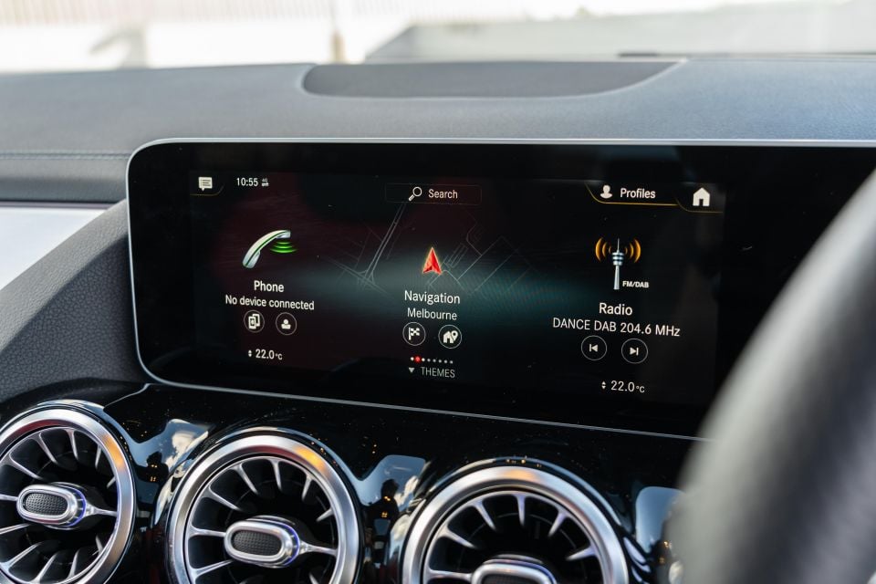 Some equipment from the Mercedes-AMG is missing. You don’t get powered front seats, for example, and the GLA can be had with modern touches such as a head-up display.