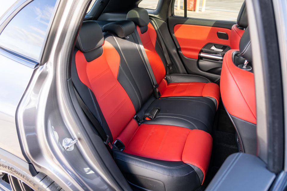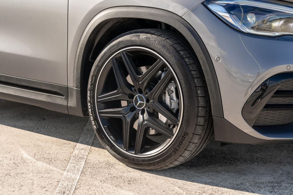 Opting for the GLA35 gets you a unique steering wheel with drive mode selectors, an adaptive suspension, unique brakes and power steering, a sports exhaust, the blacked-out AMG Night Package, and Comfort Sport seats trimmed in leather.