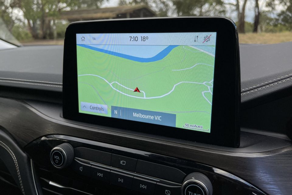 The perforated leather steering wheel feels more expensive than the Ford’s, and the digital instruments look a little slicker and have the added bonus of showing full-size maps.