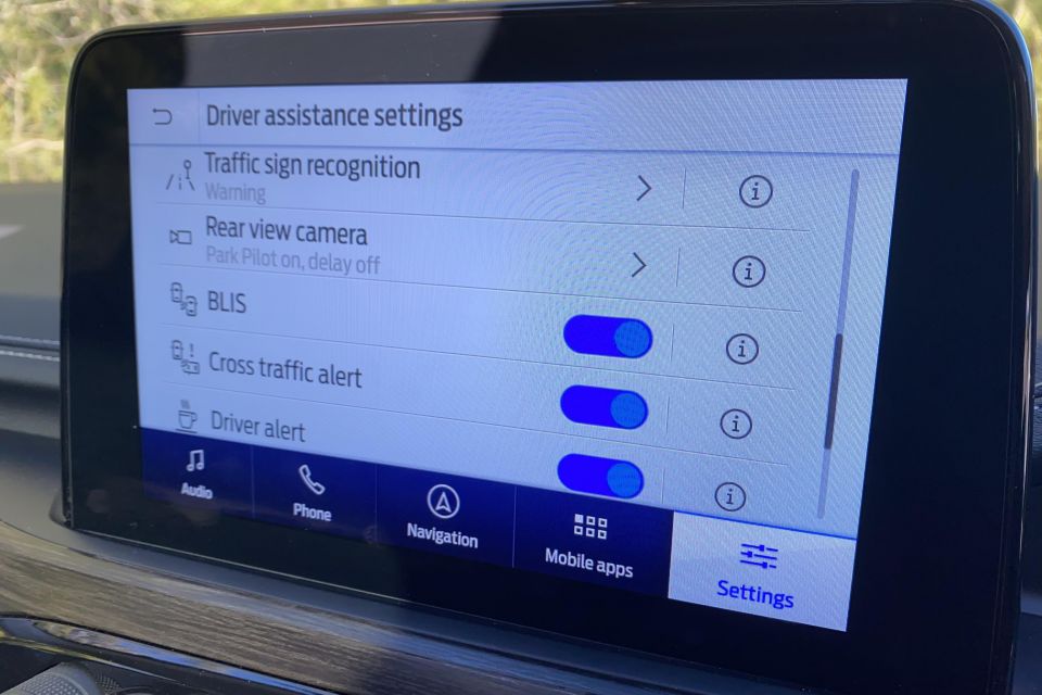 The 9.2-inch centre touchscreen is mounted flush in the dash and offers more smartphone-like swiping than the Ford’s, and slicker graphics. It also offers wireless phone mirroring.