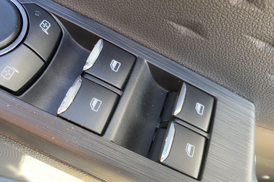 The fit and finish felt mostly ok and the solidity ditto, although I did notice peeling plastic on the door window switches that was disappointing to find on such a new vehicle. This is pictured in the gallery above.
