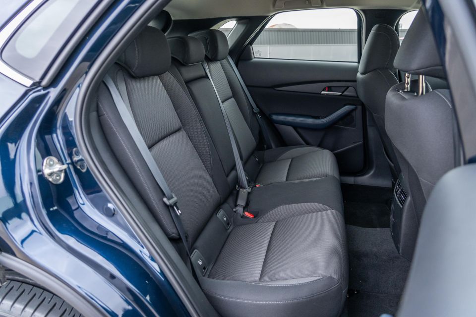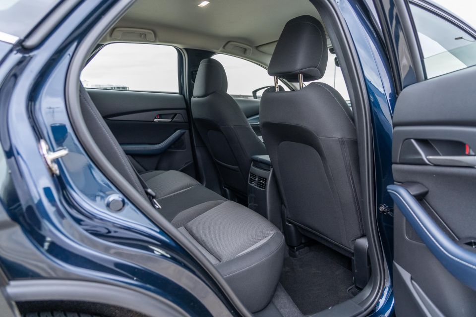 That play in the chassis also translates to a comfortable, compliant ride. Even with a torsion beam rear axle and larger 18-inch alloys shod in 215/55 Dunlop SP Sport Maxx rubber, the CX-30 does a great job of isolating the cabin from bumps.