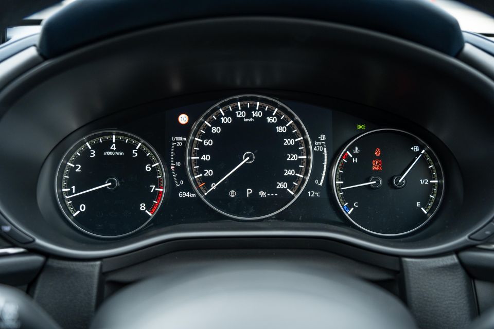 All versions of the CX-30 get a classy 7.0-inch supervision cluster display incorporating a virtual speedometer with several layouts to toggle, while the physical buttons and rocker switches on the steering wheel are easy to use and feel good in operation.
