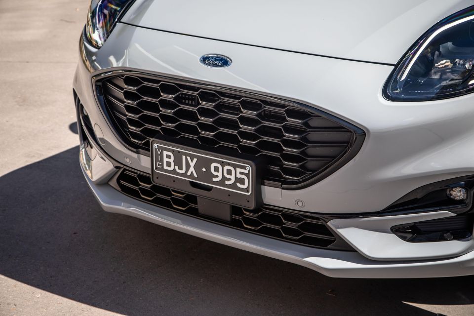 The Puma’s side profile is quite curvaceous, emboldened by sculpting and raked windows. The large front grille and bold headlights also make a bit of an impression.