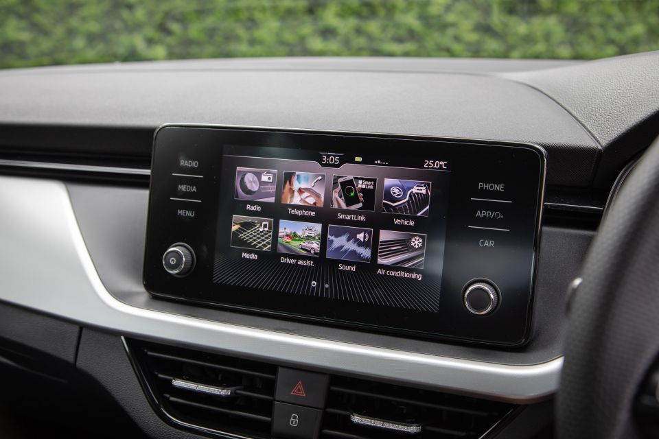 The standard touchscreen in the Skoda Kamiq is 8.0 inches and offers Apple CarPlay and Android Auto. But a 9.2-inch screen that also adds satellite navigation is available.