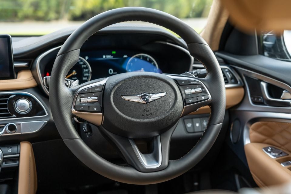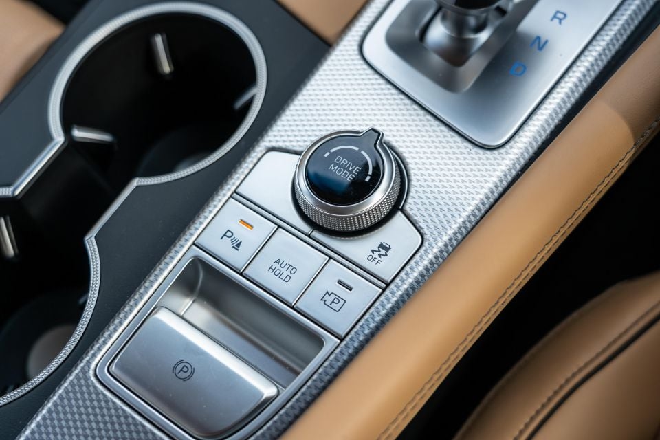 Flicking into Sport adds a bit of weight to the steering and makes the throttle edgier, as is the case in the Genesis. It feels a bit more taut, although the terse suspension doesn’t translate to iron-clad body control.