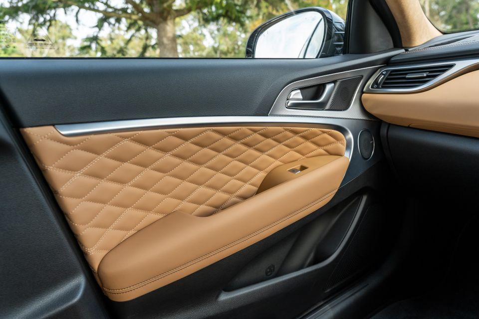 The cognac-coloured Nappa leather seat trim looks classy and feels seriously nice, and the quilting on the seats and door trims adds a bit of visual excitement.