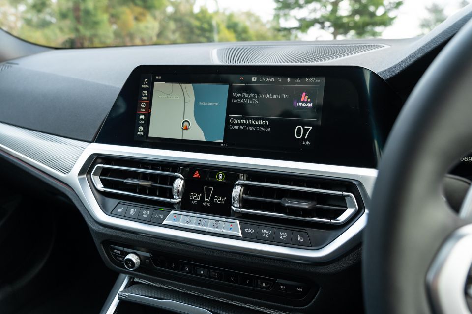 It’s a re-skinned take on the latest Hyundai and Kia system which, although functional, looks and feels a bit basic compared to the glossy, snappy BMW OS7.0 system in the 3 Series.