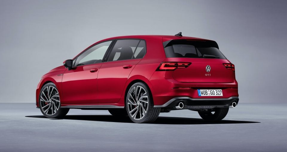 The more obvious shoulder line leads to a familiar chunky C-pillar. Note the way the ‘GTI’ badge has been moved centrally to sit below the redesigned VW badge. The roof spoiler extends further outwards than before, though the twin-pipes are very evolutionary over the Mk7.