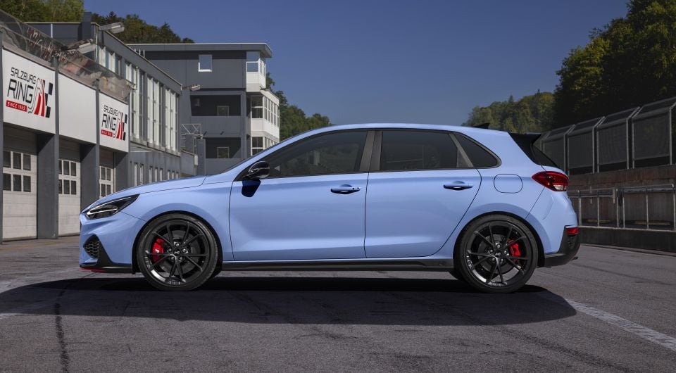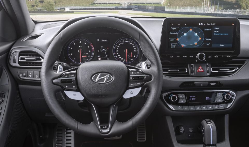 The 2021 i30 N retains five driving modes – Eco, Normal, Sport, N, N Custom – that more broadly change the throttle mapping, exhaust pops, steering resistance, transmission shift points, damping, stability control, and the electronically activated limited-slip front diff.