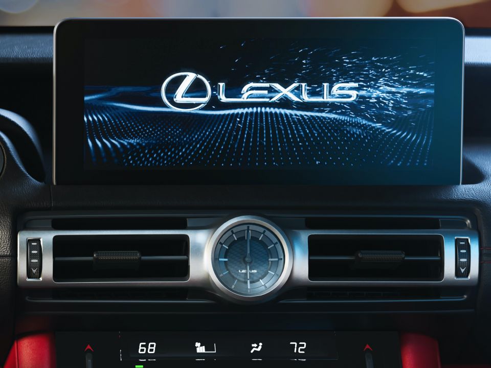 The Lexus’s interior largely carries over the lower dash – ventilation controls with haptic touchpoints, below which sits the drive mode selector, seat heating/cooling buttons, gear shifter, and infotainment trackpad – but gets a new 10.3-inch touchscreen that’s 150mm closer to the driver than it was in the old car.