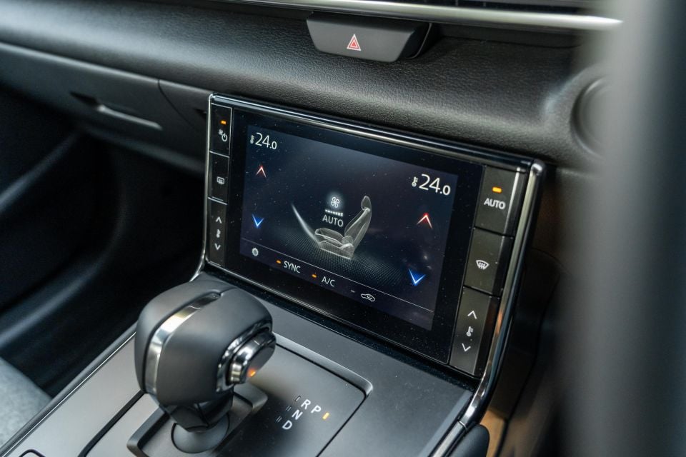 The Toyota’s centre screen is taller and closer to the driver, and runs via touch rather than a rotary dial (the Mazda’s setup isn’t all that intuitive using Apple CarPlay for instance). The climate controls more basic, but simpler.