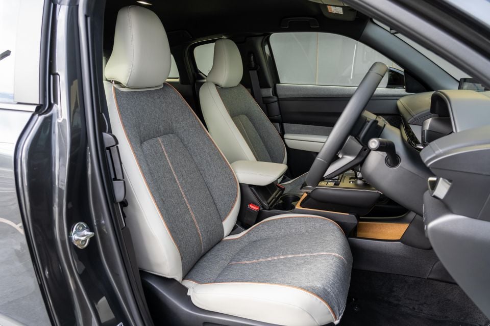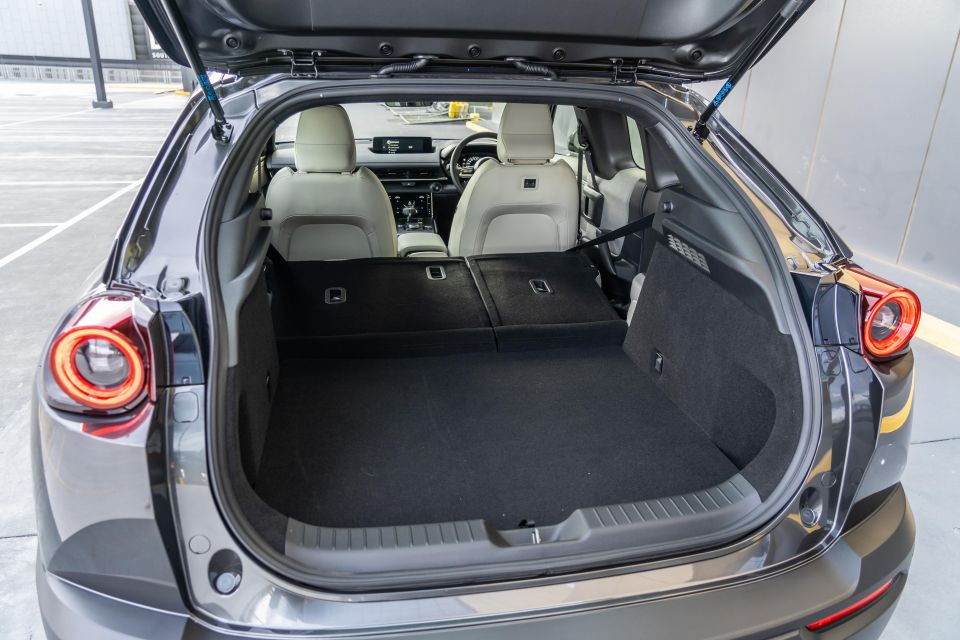 There’s a temporary spare under the floor, like in the MX-30, and in both cars the back seats fold fairly flat.