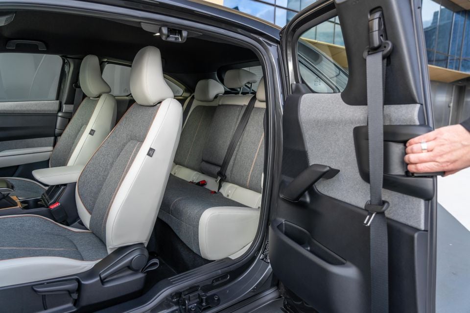 On the subject of green materials, those seats use recycled thread and are not washed in solvents during production, while the fabric-like door trims are made from repurposed PET bottles. It’s a bit BMW i3-like in this regard.