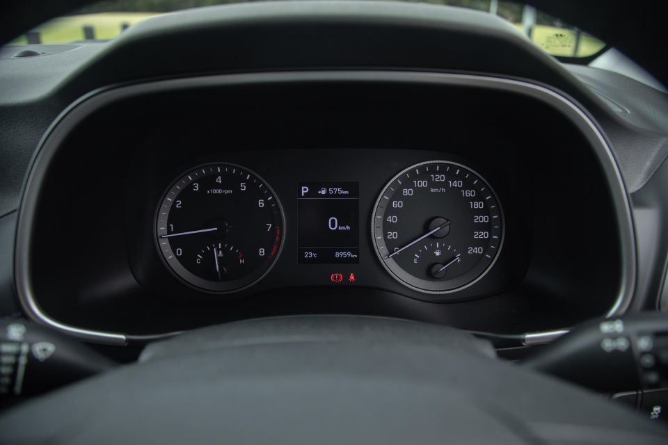 The Hyundai’s AEB system is camera-based only and offers urban-speed coverage. There’s no high-beam assistance, blind-spot monitoring or rear cross traffic alert. You do get driver attention warning, and lane-keeping assistance.