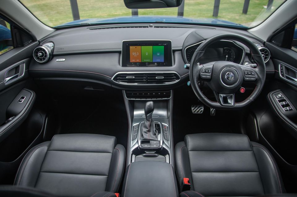 Much like its exterior styling, the MG’s cabin is fairly generic in design, conspicuously lifting details from certain European marques. But its look and feel comes together nicely enough in what’s quite an upmarket effect for this price point.