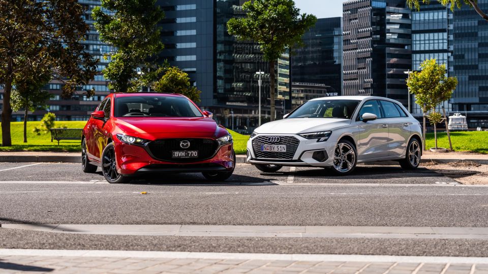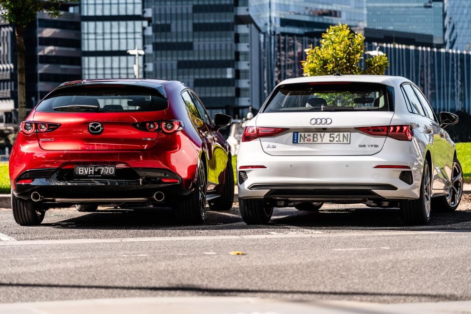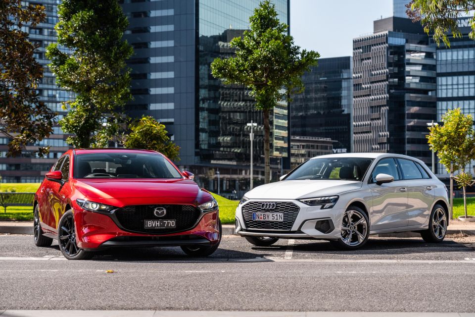 Without further ado, here’s the 2022 Audi A3 Sportback 35 TFSI v Mazda 3 X20 Astina hatch – game on!