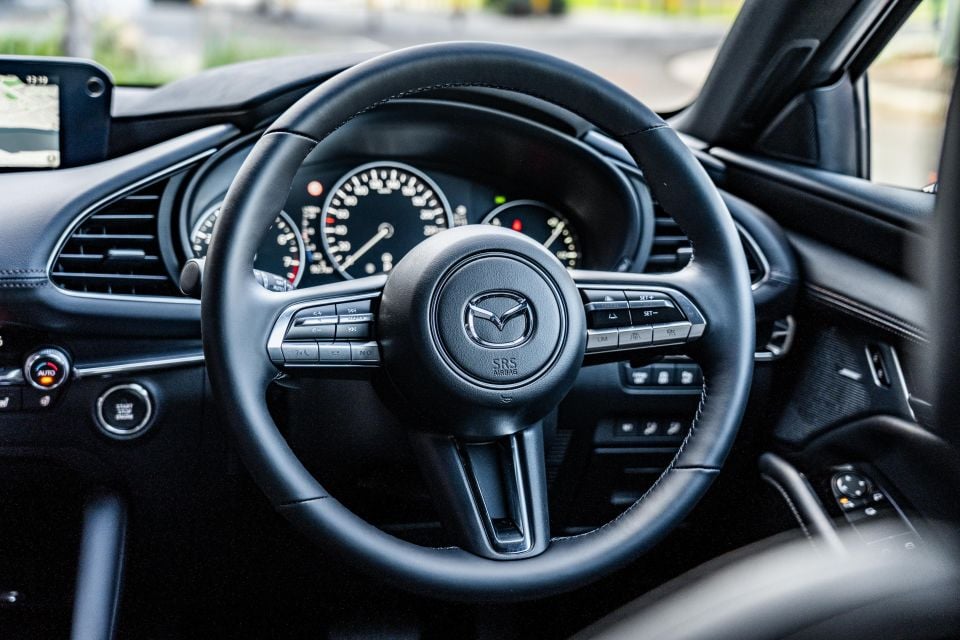 Under the bonnet of the Mazda tested here is the much-hyped 2.0-litre four-cylinder petrol engine with Skyactiv X technology – it features spark-controlled compression ignition similar to a diesel engine for a leaner fuel-air mix designed to deliver the economy of a diesel with the performance and driveability of a conventional petrol.