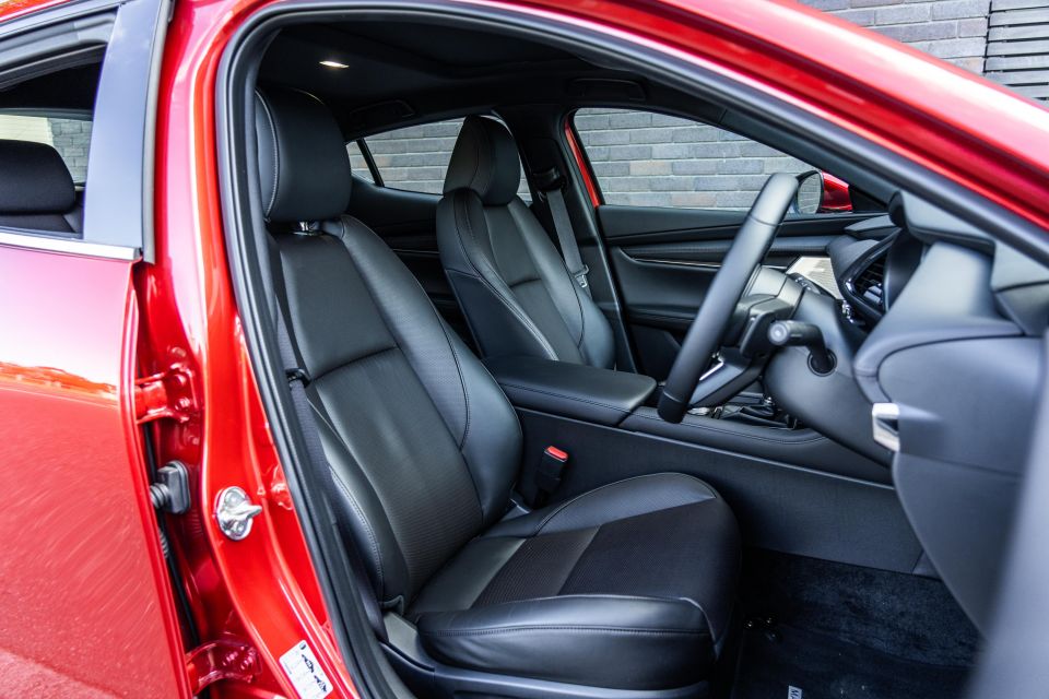 I did find the lack of under-thigh extendable cushion a bit annoying, given it’s a favourite feature of premium-branded European vehicles, but at 6’1 I easily found a comfortable driving position. The Mazda’s fully electric seats are noticeably more comfortable, though.