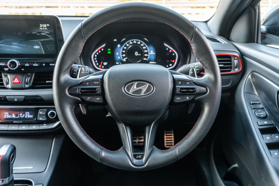 The i30 N Line is backed by a five-year, unlimited-kilometre warranty with 12 months of complementary roadside assistance included with purchase, the latter extendable to up to nine years if you service within the Hyundai network.