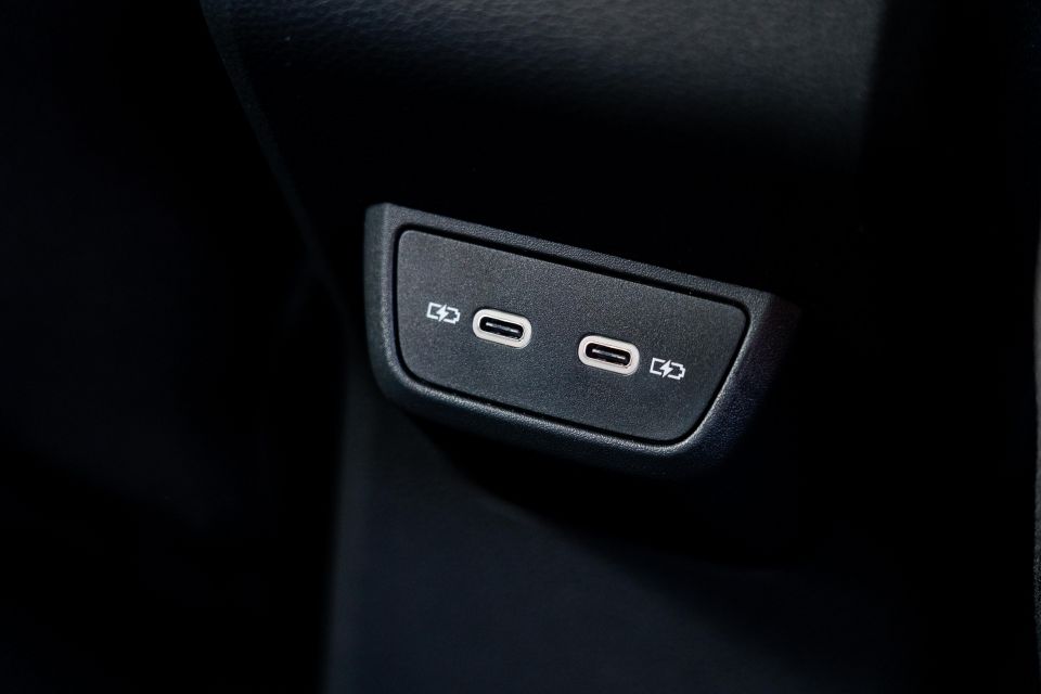 There are no rear air vents and no fold-down rear centre armrest, though there are two USB-C charge ports, map pockets and large door bins for big bottles.