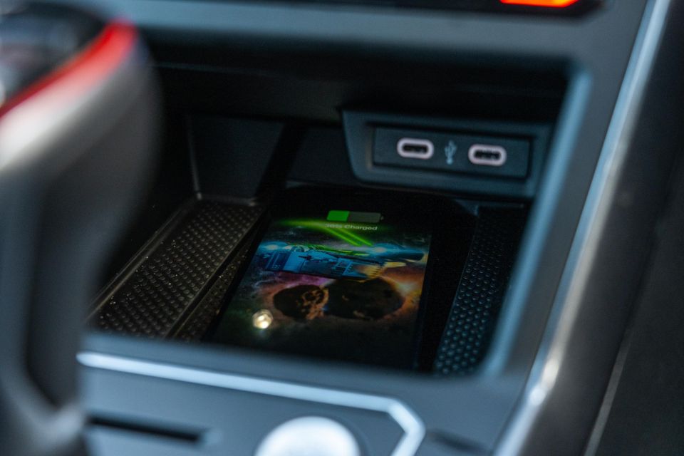 Storage is pretty good, though. There’s a wireless phone charger under the centre stack, bolstered by two USB-C outlets if you need to juice up your device quickly.
