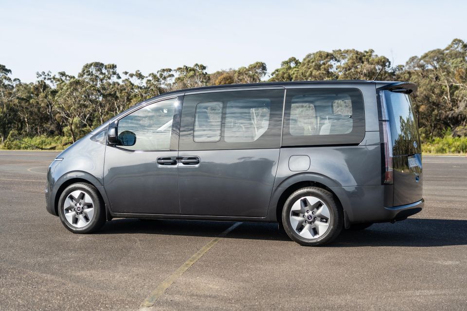 The Palisade’s 20-inch wheels are blingier than the Staria’s 18-inch wheels, but the Staria has powered side doors that can be opened with the key fob – unlike the Palisade.
