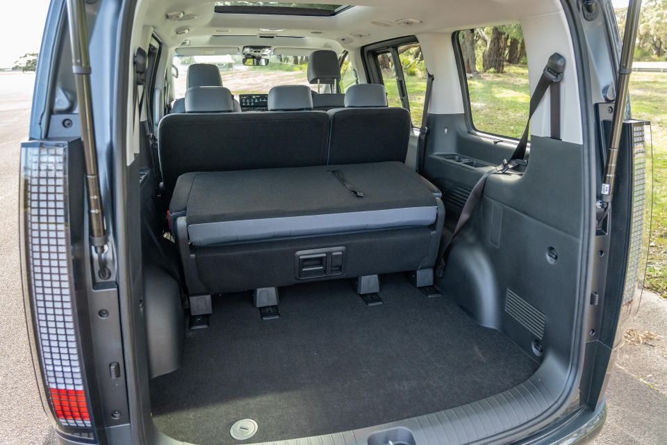 My 194cm self had acceptable headroom and legroom behind my own seating position, so your kids will have acres of room. The seats both slide and recline. Walk to the kerbside and a single-touch button tilts and slides the 60 per cent bench portion to open access to the third seat row.